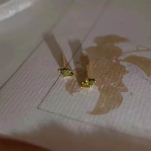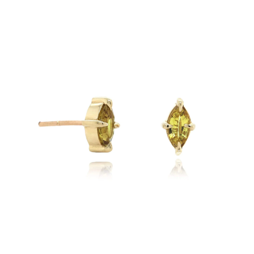 Boucles puces avec zircon olivia en forme de losange. En argent plaqué or.