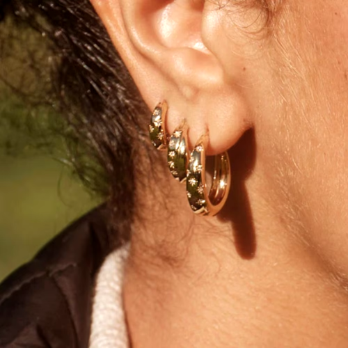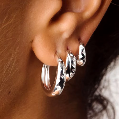 De la gamme Celesta en argent plaqué or, découvrez les boucles d'oreilles créoles Celesta composée de détails étoilé serti de zircons argenté.